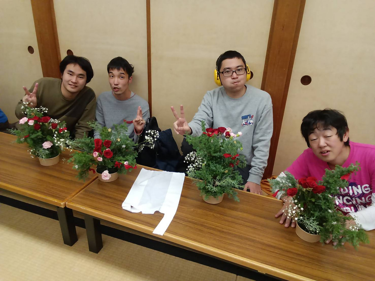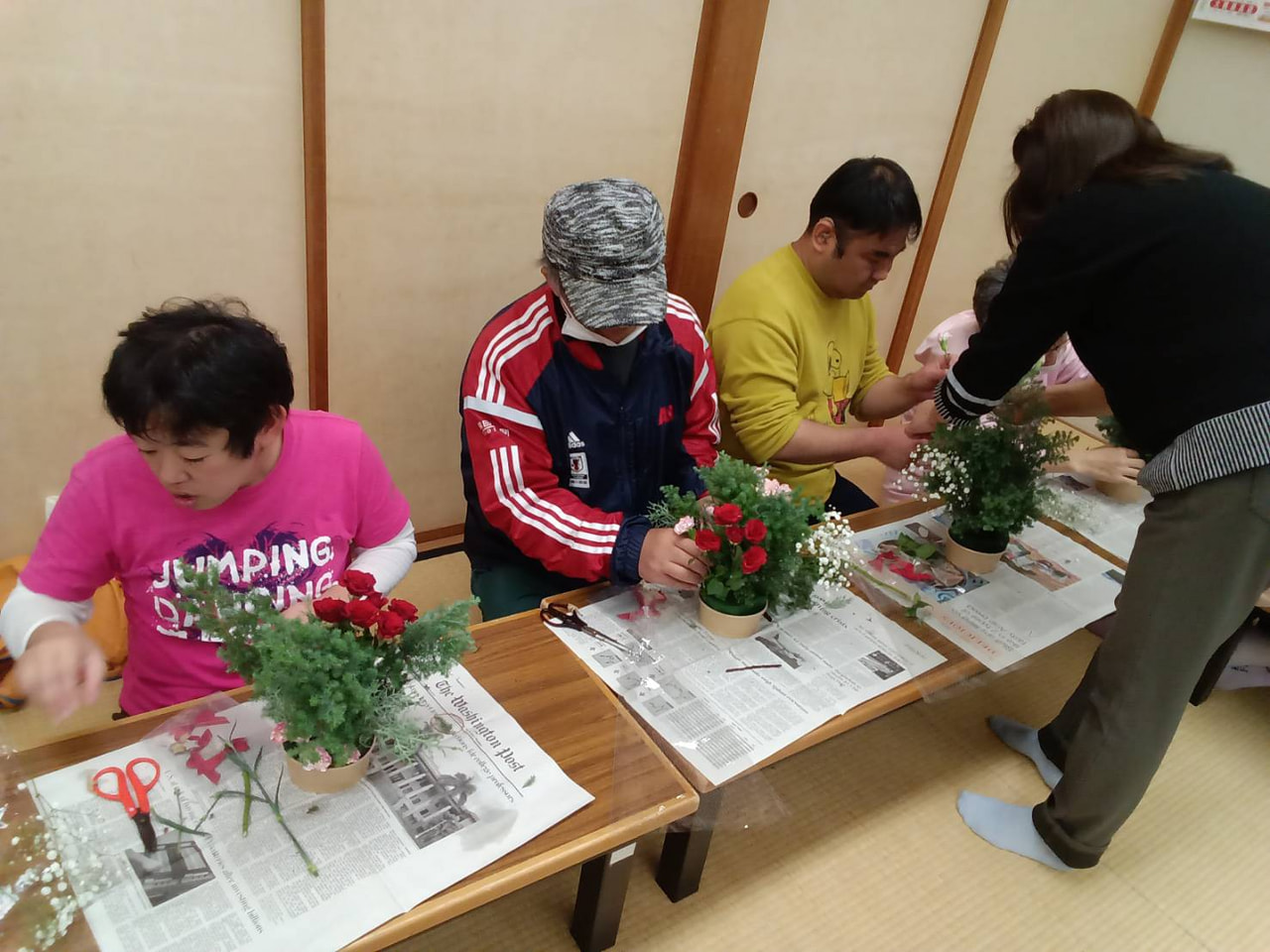 オアシスに生花を挿したり、グルーガンで飾りつけしたり、