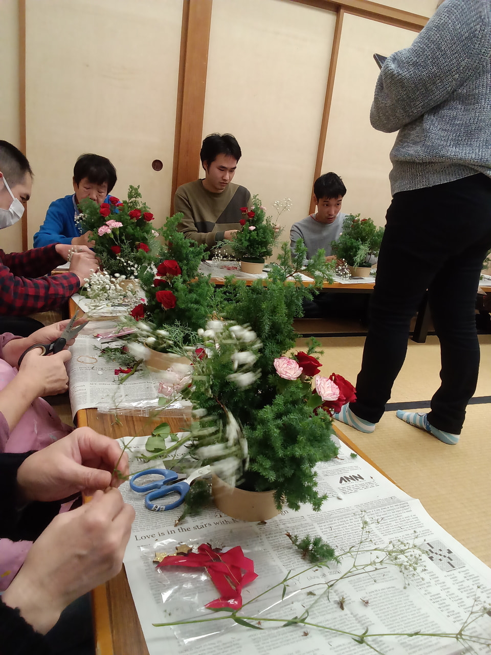 生木と生花を使ったクリスマスツリーを作りました🎄💐