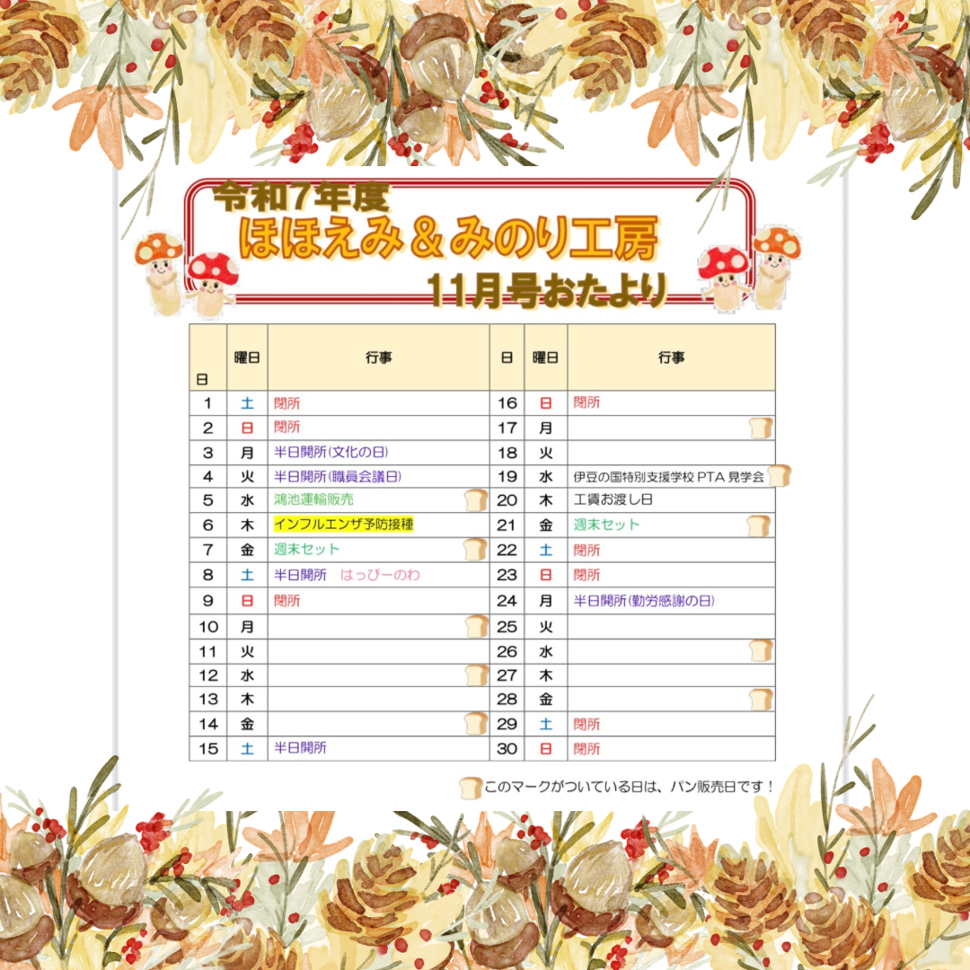 ほほえみ&みのり工房 11月の予定🍄🍁