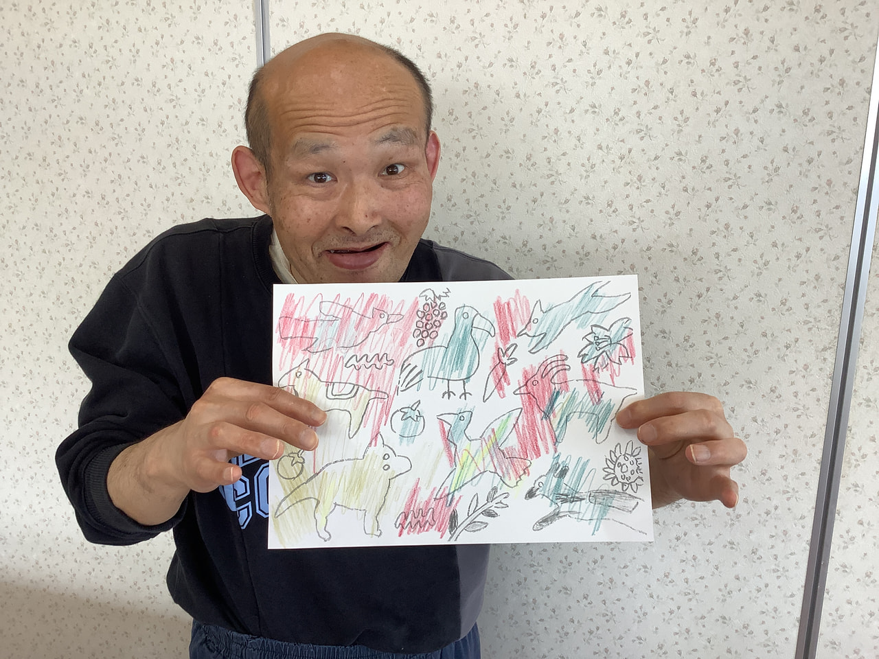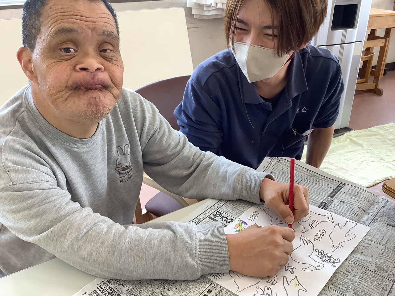 男性棟の午後活動は食堂を使用した絵画活動♪