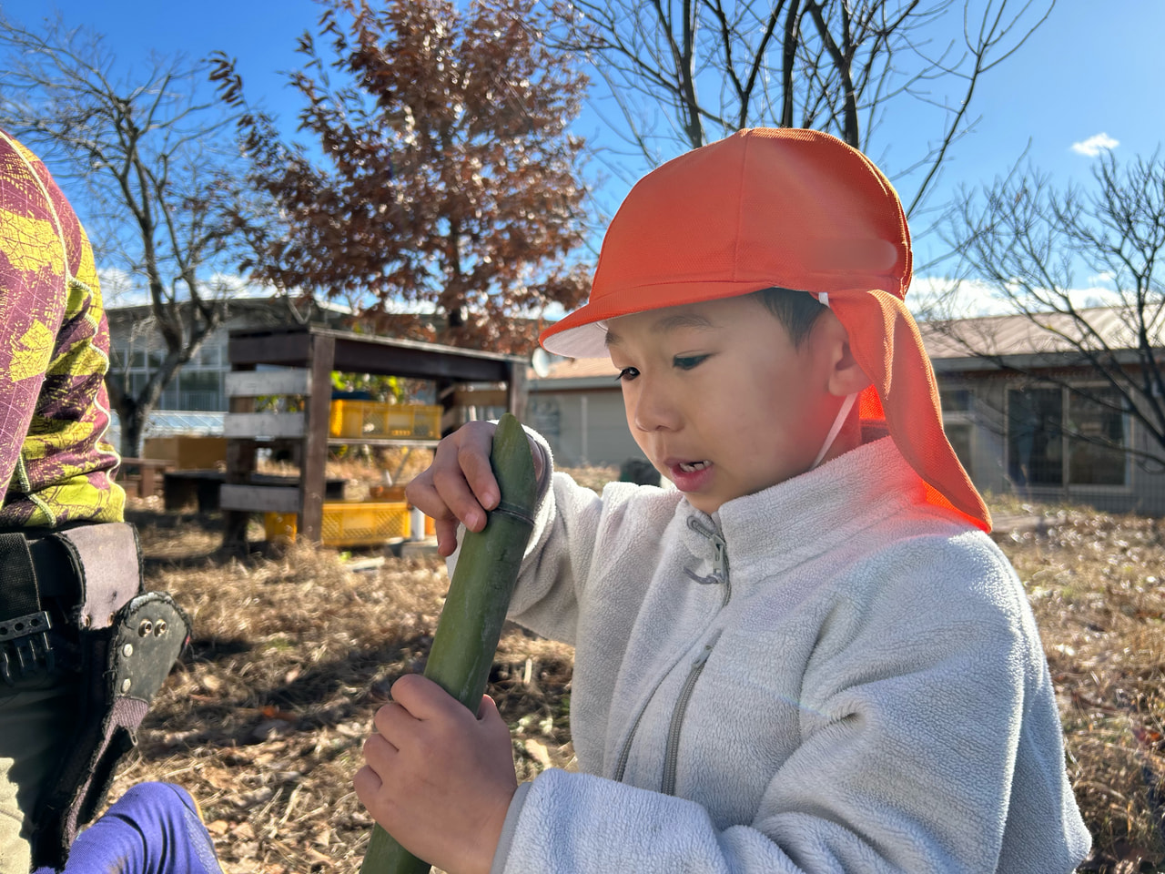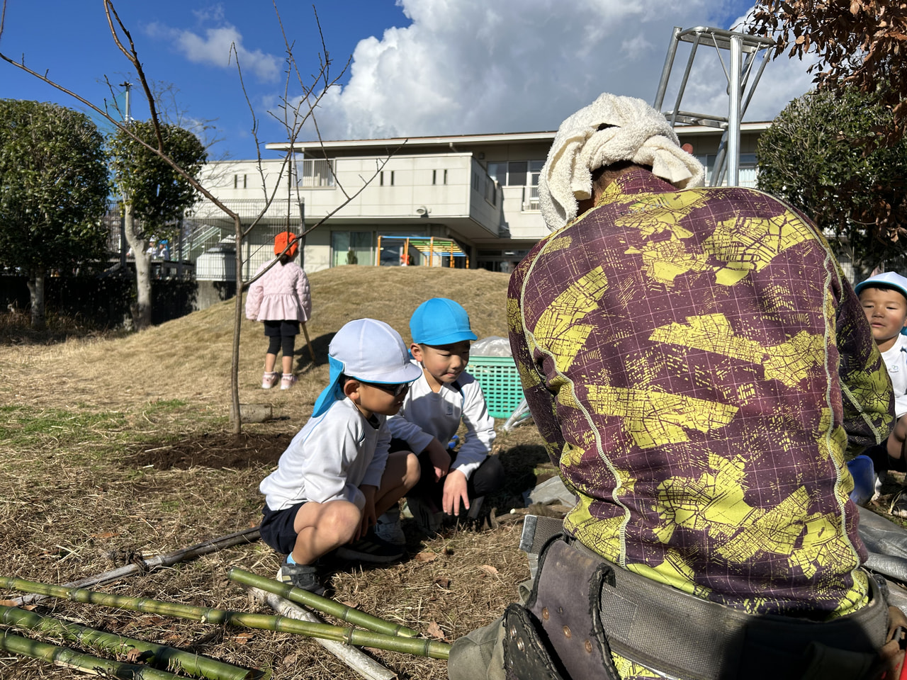 木を植える様子や支柱に使う竹にも興味津々な子ども達でした。