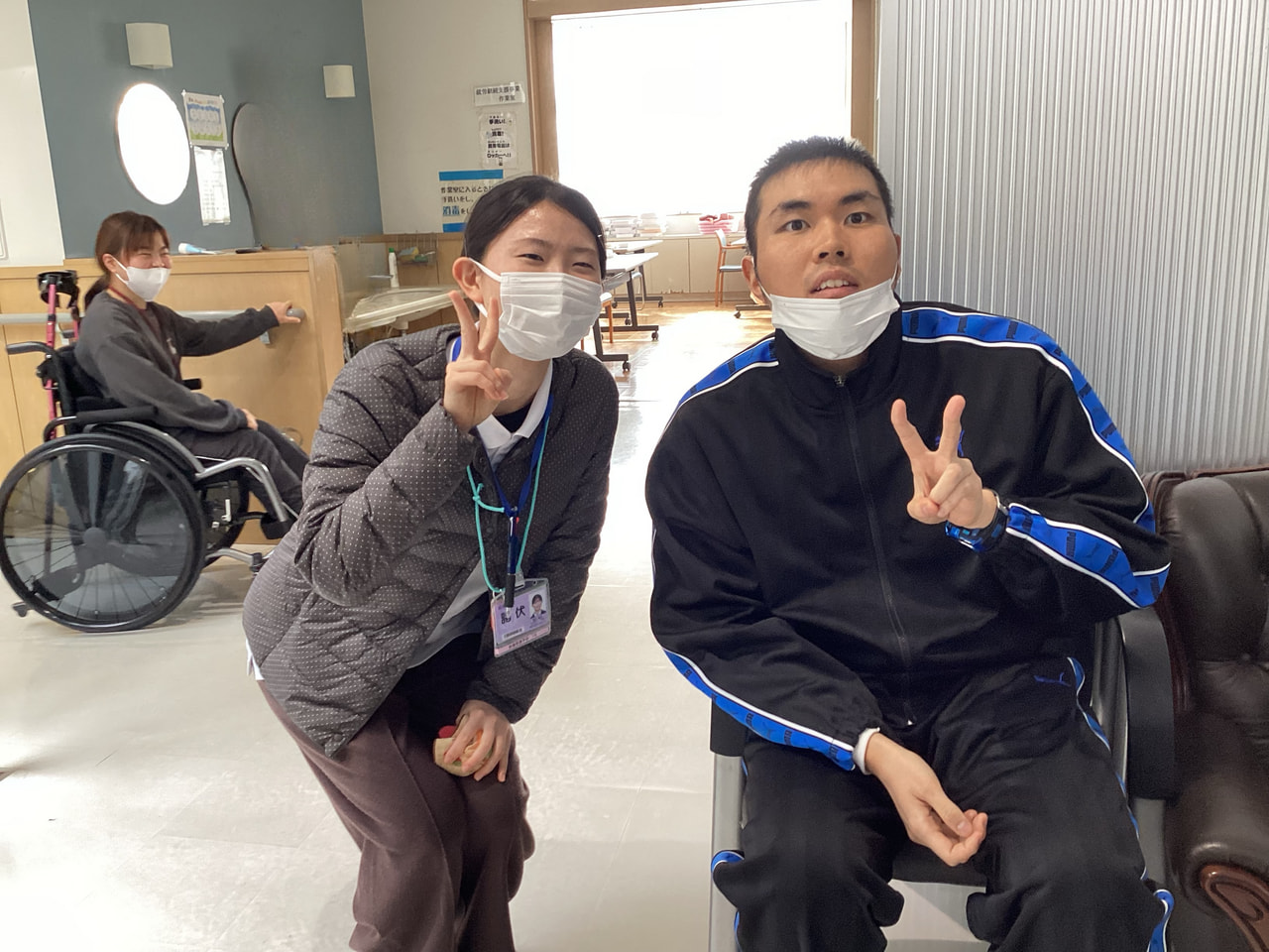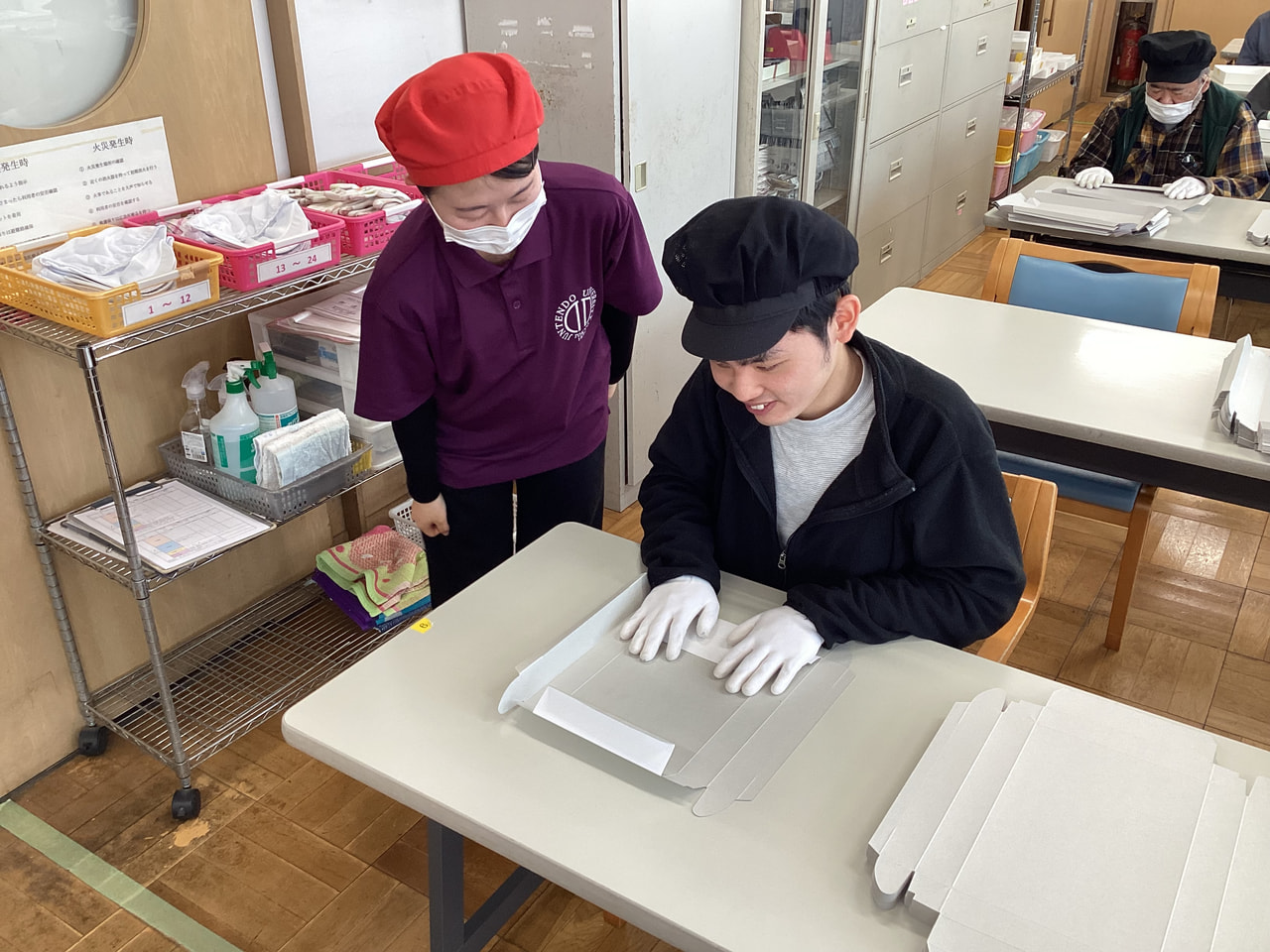 利用者さんと積極的にコミュニケーションをとりながら、作業の支援にも一緒に取り組んでいます。