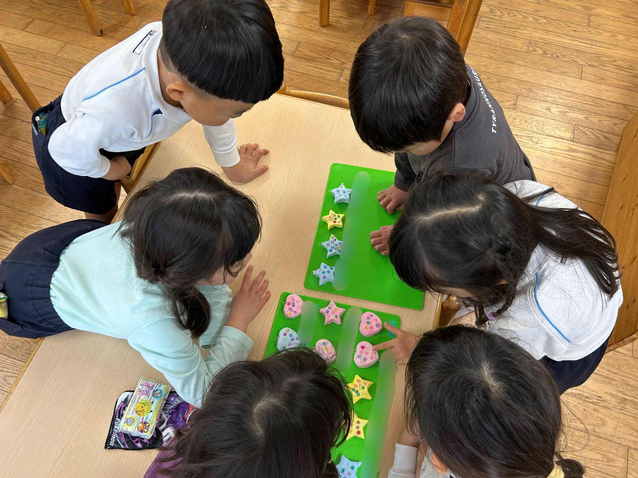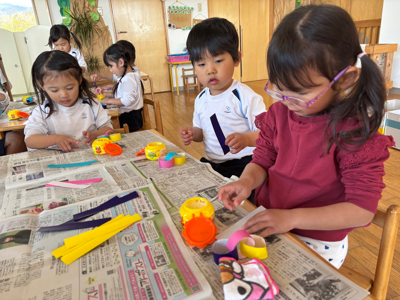 子どもたちが自ら考え、紙粘土を使用してネックレスを作りました。